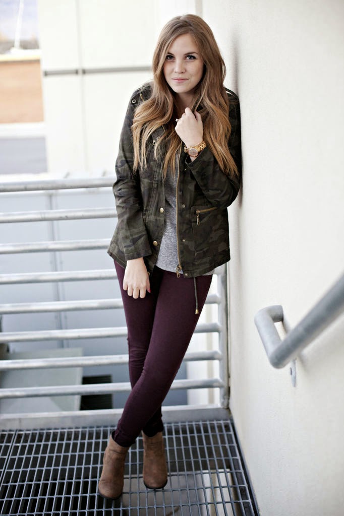 I love the camo jacket paired with those pants! Perfect look for fall!
